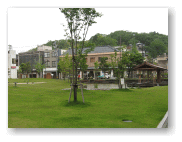 片山津温泉の温泉配湯所とあいあい広場です。足湯があるので、ゆっくりとしていくのもいいかも。