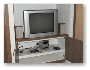 テレビは、戸棚の中にあります。 |