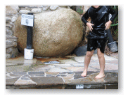 水に触れてみると、案の定、すごく冷たい。よく、入れるな〜。 |