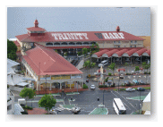 | 海の向こうに虹がみえる。海の上は、雨が降っているのだろうか? 食事が終わり、食後の散歩にケアンズの街を歩いてみます。 |