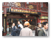スターバックスを発見。ちゃんと雰囲気にあうように作ってあります。エライ長い行列が出来ている。何だろうと思って見てみると、小籠包のお店。