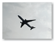 真上を飛行機が飛び立っていきます。 |