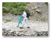 | 途中で休憩を入れながら、登っていきます。休憩の時、子供たちは、横になっている。この辺りは、岩場になっている。 |